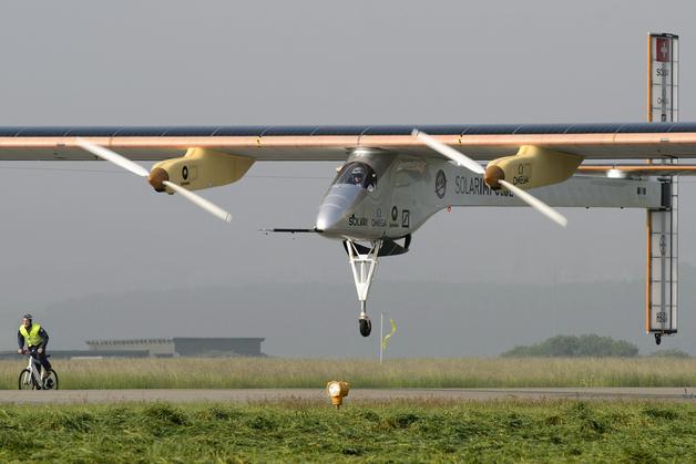 El avión solar, «Solar Impulse» ha estado en España desde el pasado 24 de mayo, procedente de Suiza, en concreto de la localidad de Payerne, y no había salido aun debido al mal tiempo reinante en Rabat. Así se completará el reto de volar más de 2.500 km sin usar combustibles líquidos procedentes del petroleo.